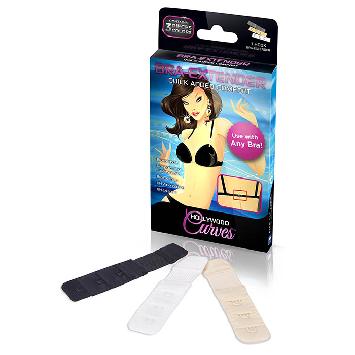 Часто бывают ситуации, когда понравившаяся модель бюстгальтера оказывается тесноватой, или из-за набранного веса любимый лиф стал тяжелее застегиваться, создавая ужасный дискомфорт. Набор расширителей для бюстгальтеров от Hollywood Curves помогает решать эти проблемы, и Вы можете спокойно носить любимые модели бюстгальтеров с комфортом и без стеснения груди и спины. Данные расширители имеют формат застежки из одного крючка. Скобы для крючков имеют три ряда, расположенные в сантиметре друг от друга, так что Вы с легкостью подберете нужный размер. Набор состоит из 3 расширителей: черного, белого и телесного.