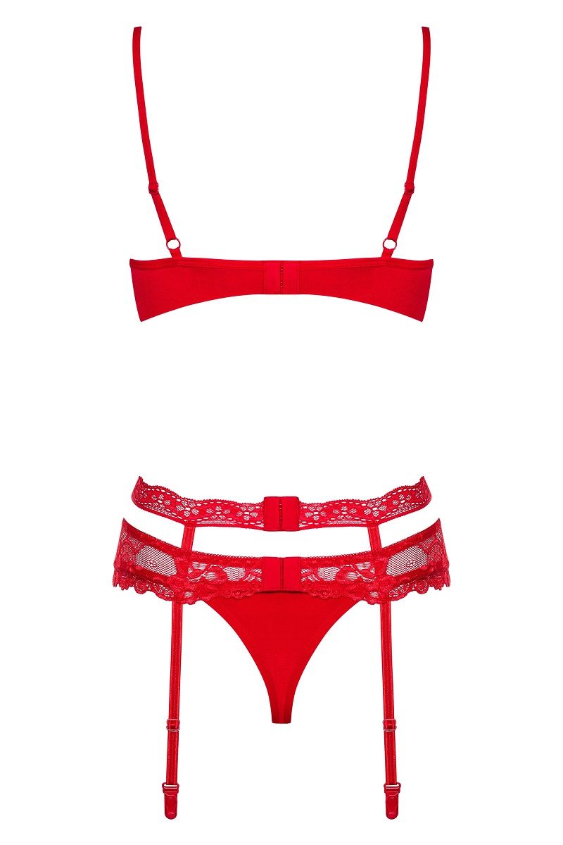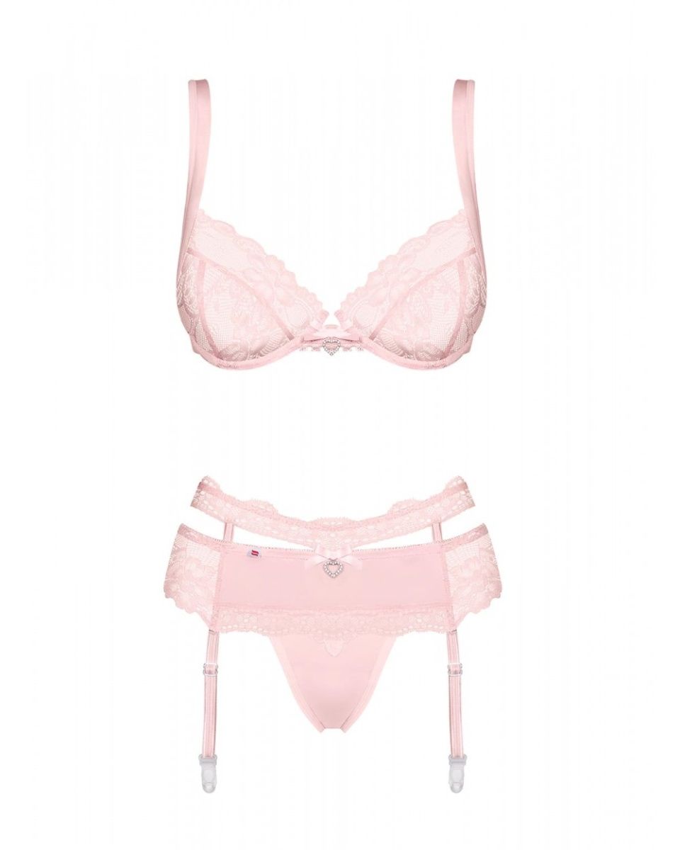 Чувственный ажурный комплект Heartina из 3 предметов. В комплекте: бюстгальтер, трусики-стринги, пояс.