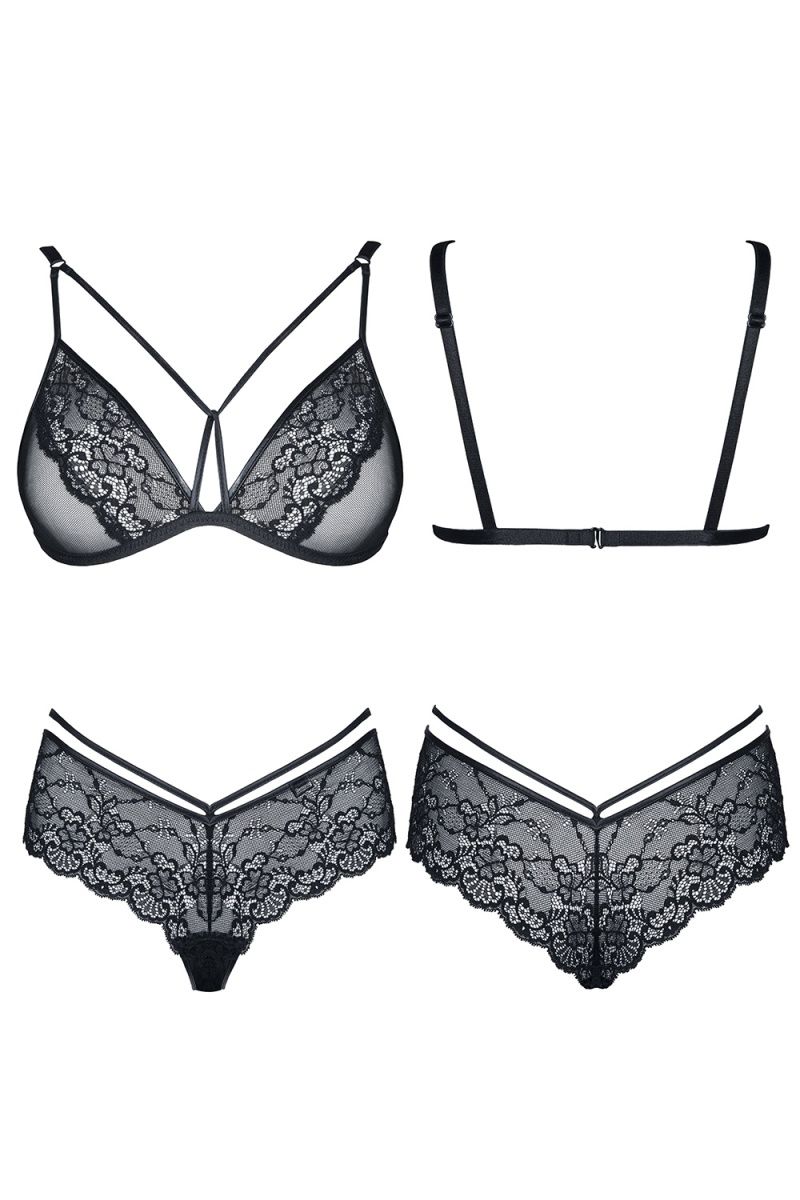 Комплект с эротичным кружевом и контурными лентами Grace. В комплекте: бра, трусики.
