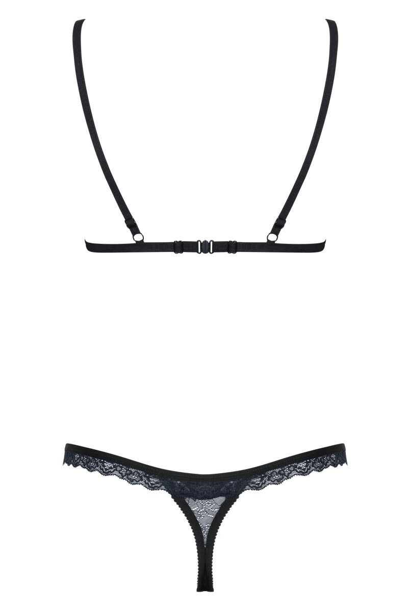 Кружевной комплект белья состоит из бюстгальтера и трусиков, бретели регулируются по длине. В комплекте: бюстгальтер и трусики-стринги.