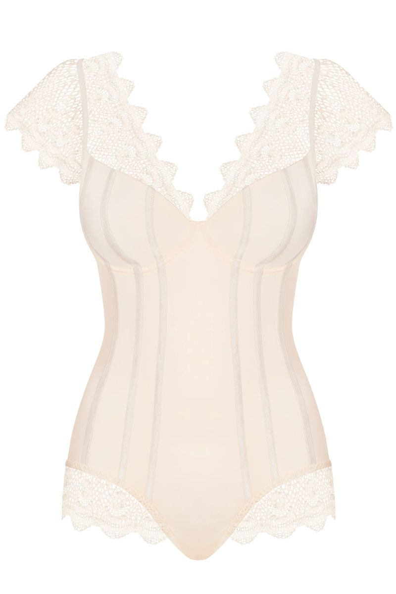 Боди Moketta с сетчатыми вставками и коротенькими рукавчиками.