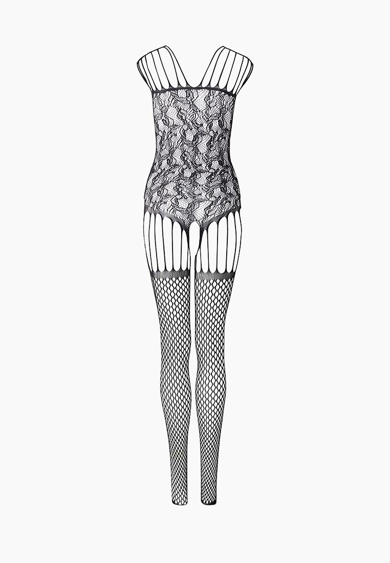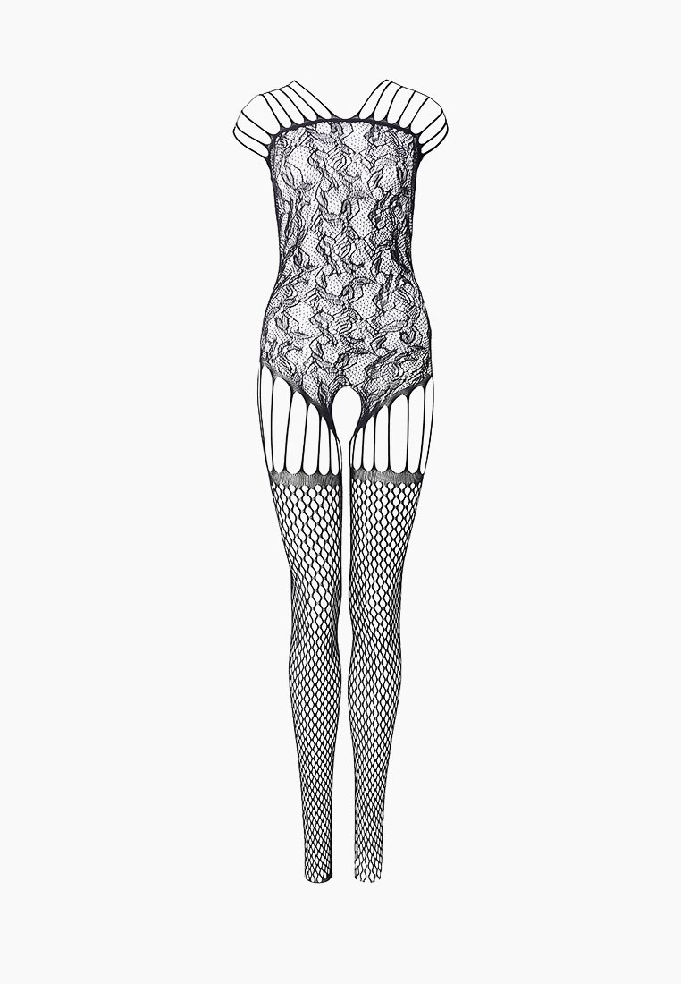 Чёрный комбинезон с ажурной верхней частью. С интимным доступом. Трусики не входят в комплект!