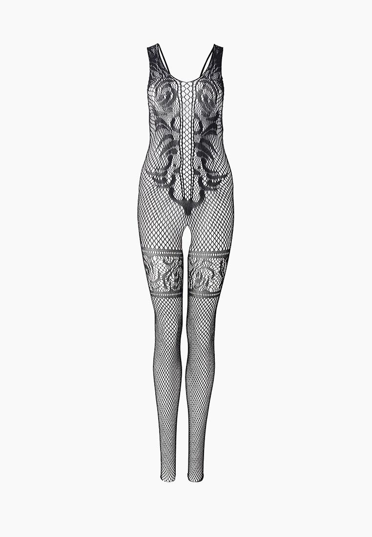 Чёрный комбинезон в сетку с ажурным рисунком. С интимным доступом. Трусики не входят в комплект!