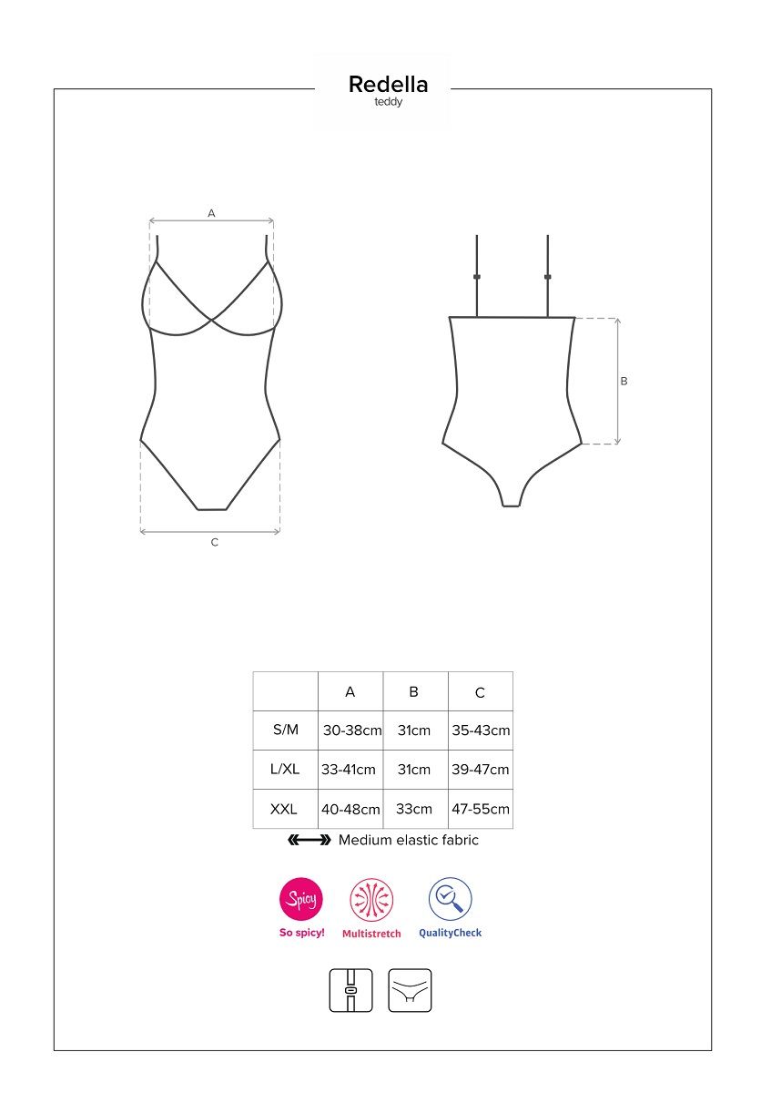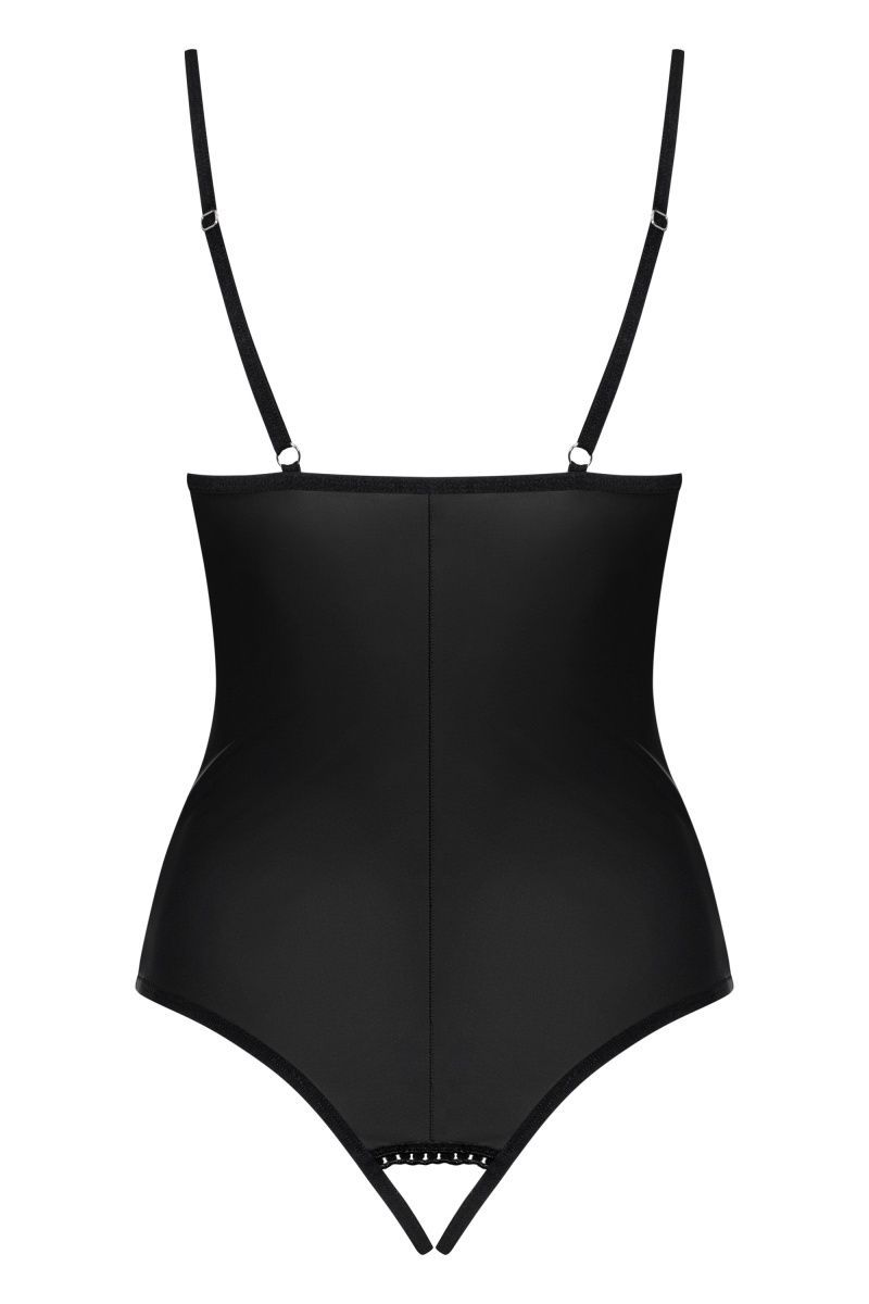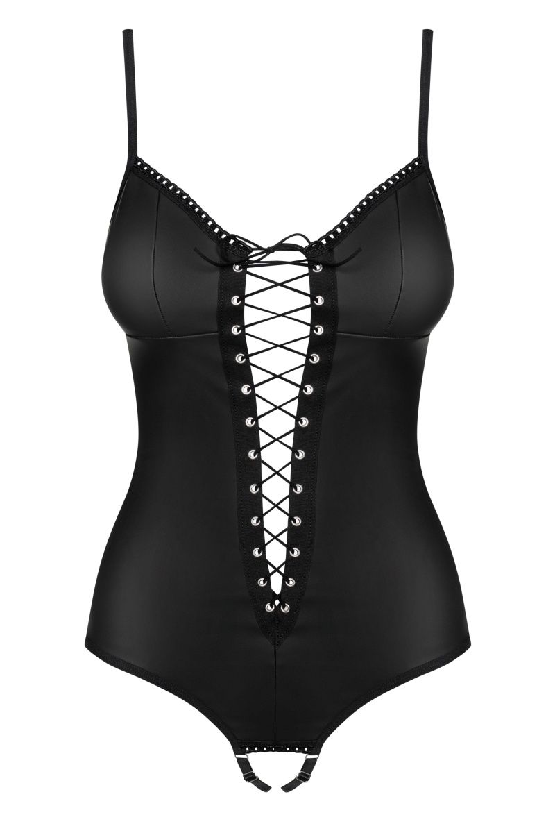 Соблазнительное контактное боди Redella выполнено из эластичной эко-кожи. Лиф мягкий без косточек, бретели регулируются по длине. Шнуровка проходит практически по всей передней части изделия.