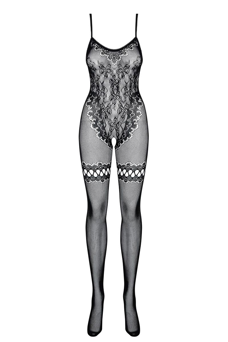 Женственный чулок на все тело с цветочным мотивом! Пикантный вырез в области бикини. На ногах - узоры, имитирующие резинки для чулков. Кэтсьюит на бретелях.