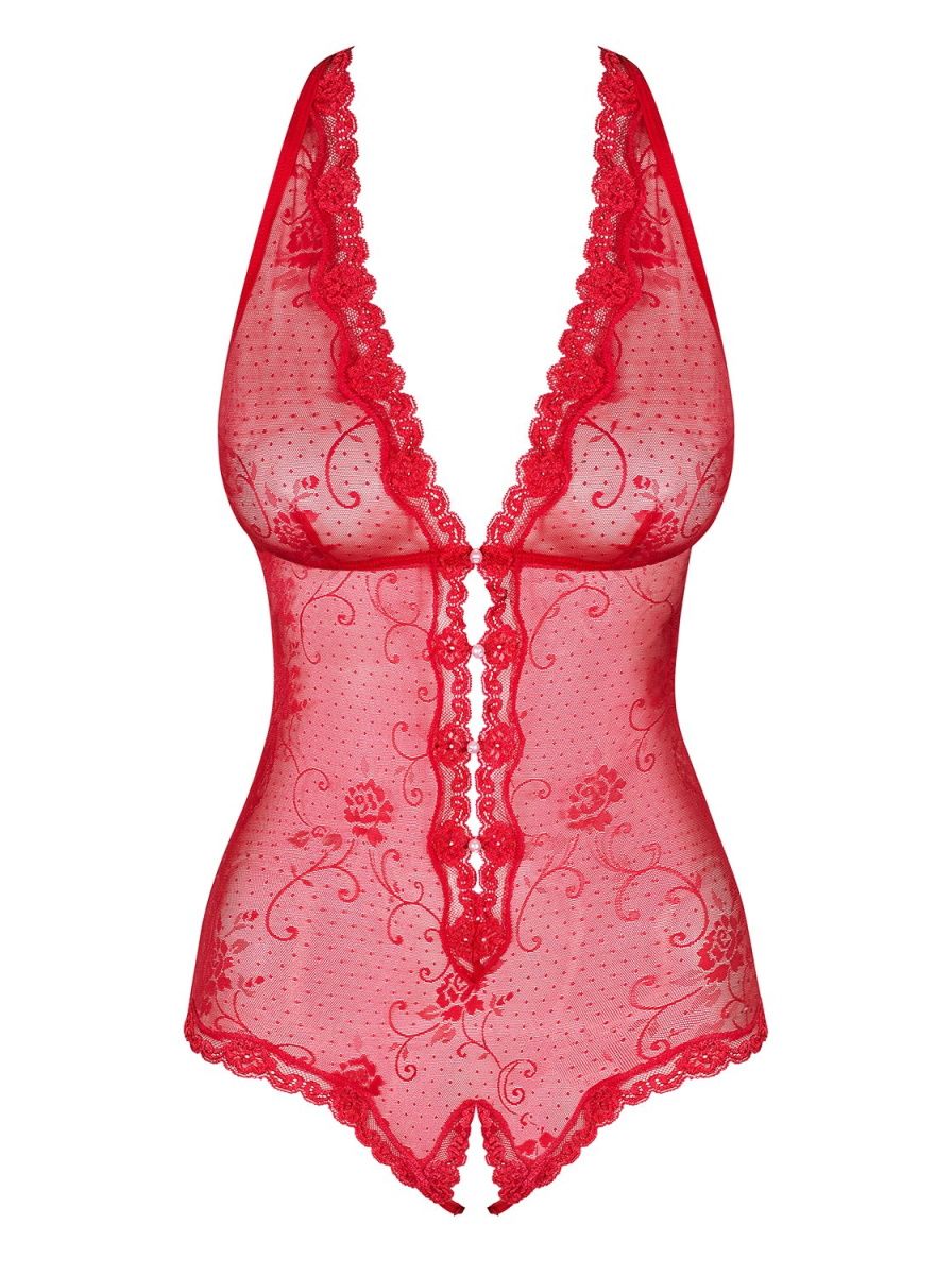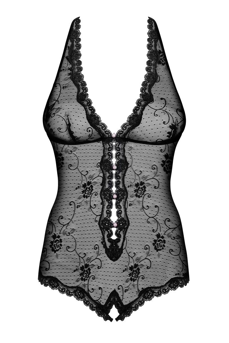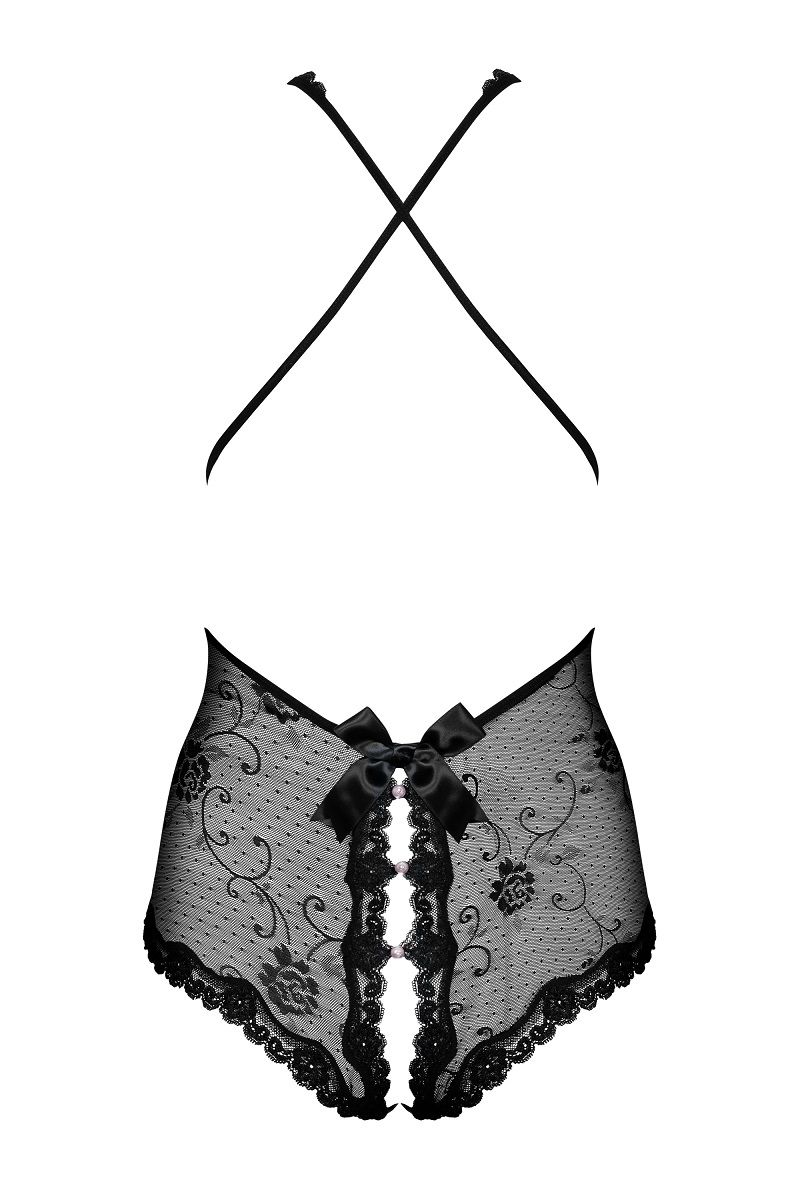Кружевное боди Fiorenta с интимным доступом. Декор в виде бусинок под жемчуг.