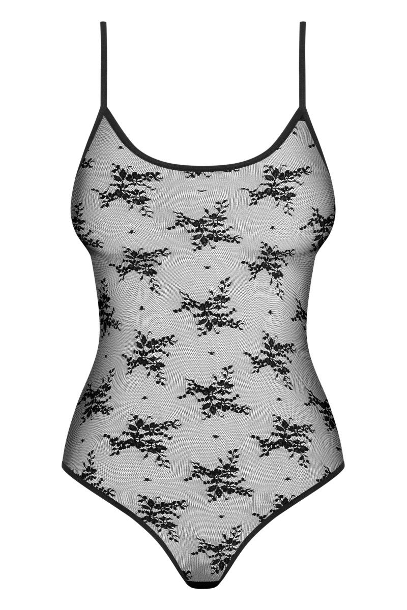 Откровенное боди Jennifairy выполнено из прозрачной ткани с орнаментом. Бретели регулируются.