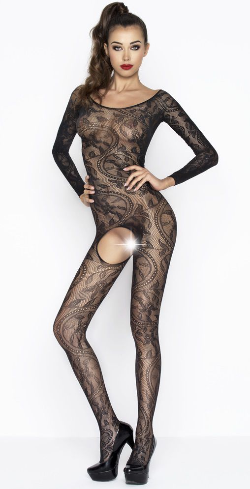 Роскошный комбинезон с длинными рукавами и цветочным узором выполнен в стиле очаровательного и романтичного итальянского кружева, которым ранее украшали наряды императриц и принцесс. Комбинезон плотно прилегает к телу, создает видимость одеяния. В то же время мужчина, находясь рядом, чувствует тепло женского тела. Доступ к горячей промежности и вовсе сведет его с ума.