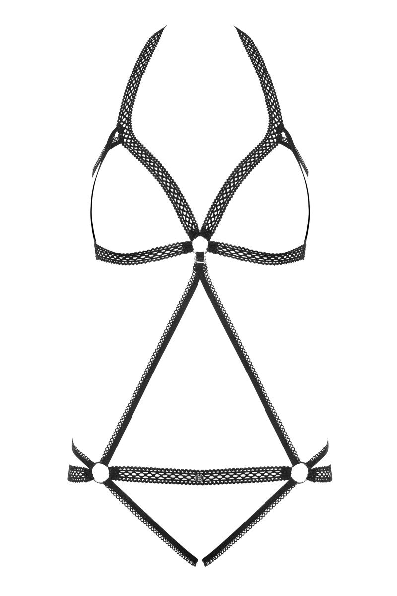 Пикантное боди Darkie состоит из эластичных лент и декоративных колечек. Нижнюю часть боди можно отсоединить от верхней части под бюстом.