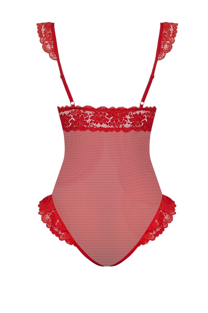Полупрозрачное боди с кружевными вставками. Лямки регулируются по длине.