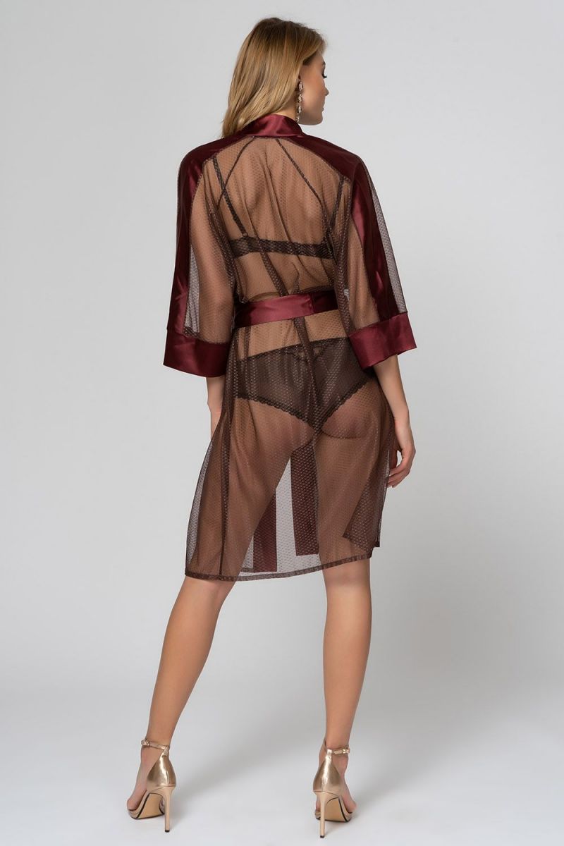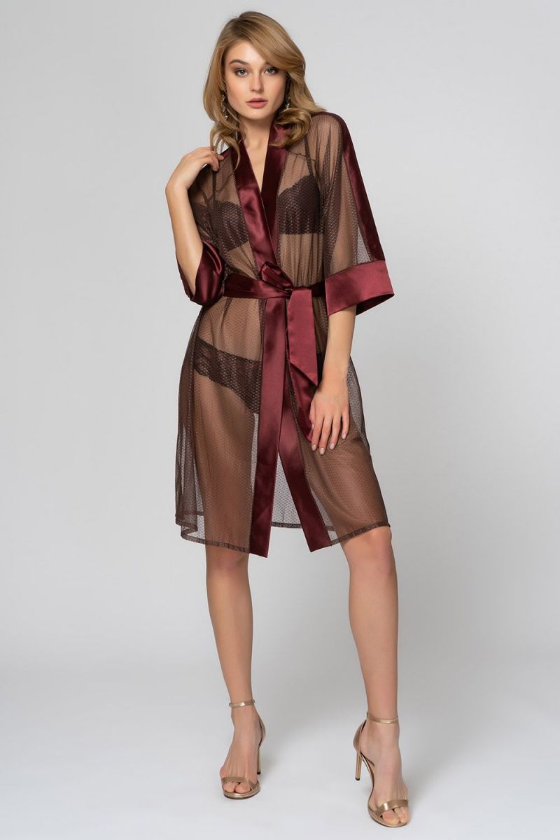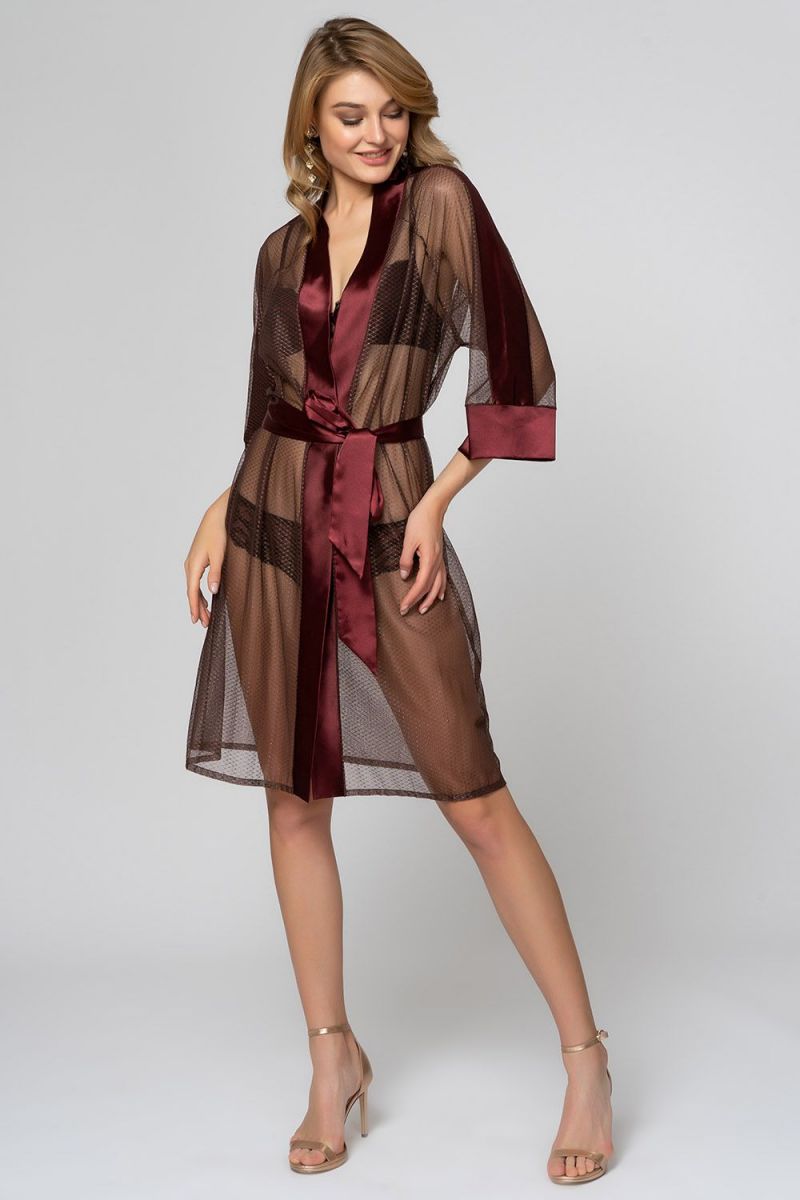 Легкий халатик выполнен из полиэстера высокого качества. Халат на запахе, свободного кроя для комфортной носки. Края полочек и съемный пояс выполнены из атласной ткани. Лёгкий халат настроит не только на отдых, но и более яркое продолжение дня.