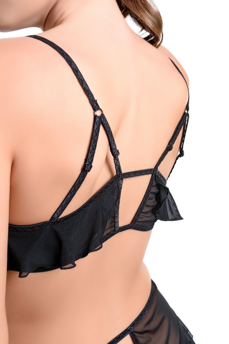 Бралетт Lora от Erolanta поможет вам стать магически привлекательной. Мягкий топ из прозрачной эластичной сетки с регулируемыми бретелями интригующе приоткрывает грудь. Кокетливые воланы околдовывают ритмичными покачиваниями. А дерзкие стрепы приковывают взгляд к зоне декольте. Бралетт Lora от Erolanta — ваша магия обольщения.