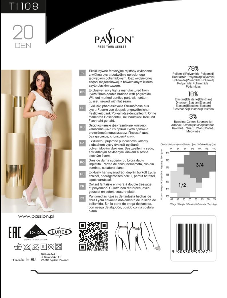 Колготки однотонные с рисунком, изготовленные из пряжи Lycra вдвойне оплетенной полиамидом. Плоский шов, без трусиков, хлопковый клин. Плотность - 20 ден.