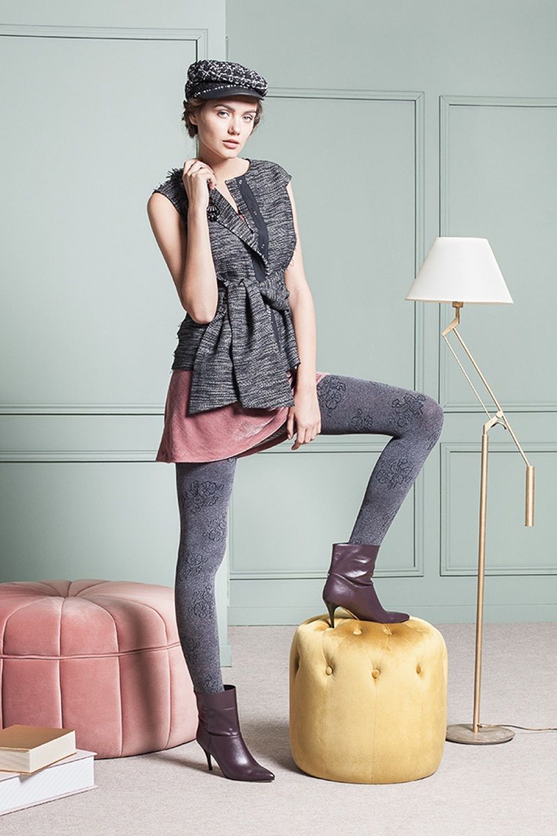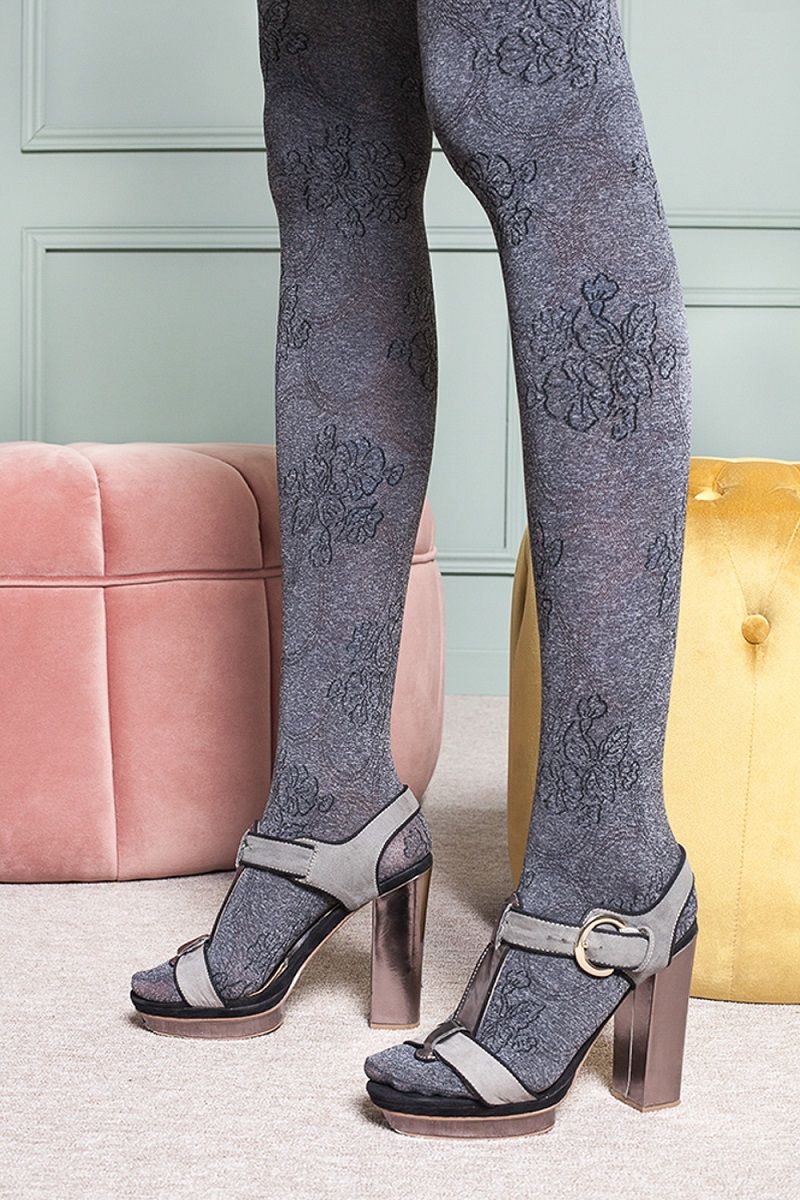 Фантазийные колготки Fiona с крупным цветочным узором.