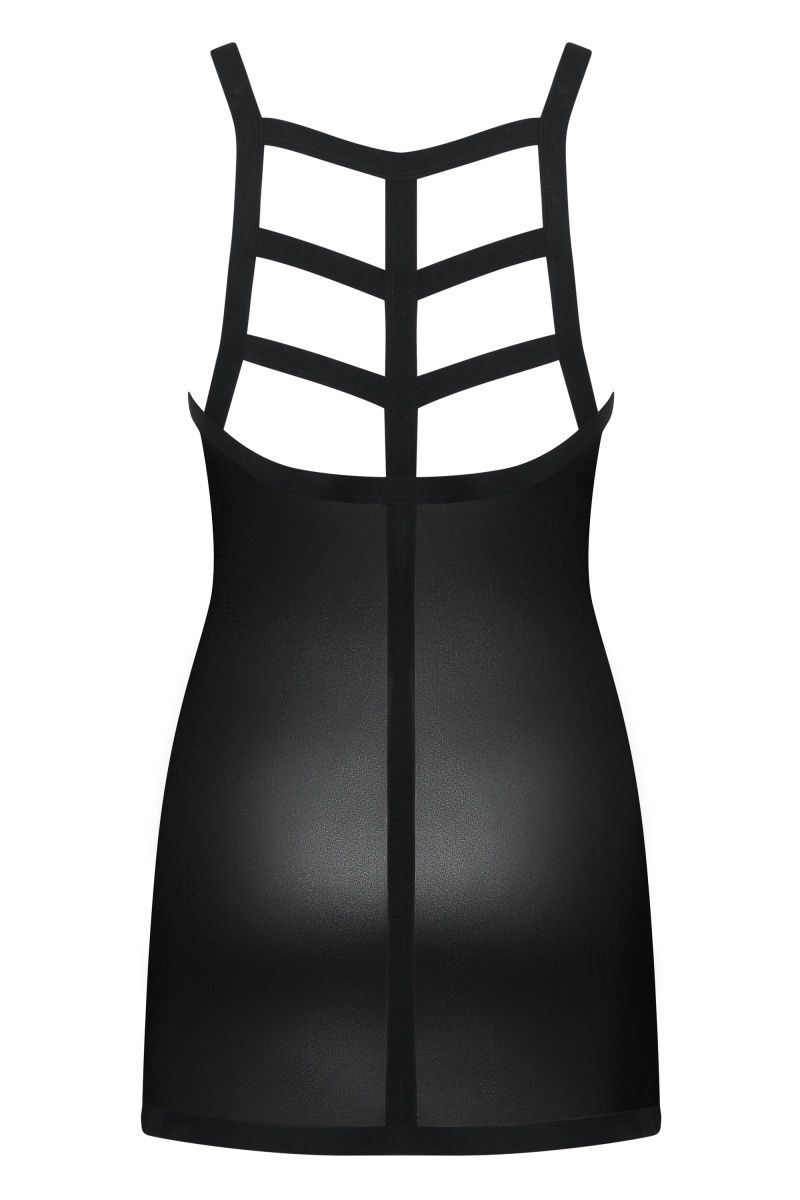 Эффектное платье Leatheria выполнено из тонкой эластичной эко-кожи. Бретели выполнены из широких стреп-лент, которые переплетаются на спинке. В комплекте: платье и трусики-стринги.