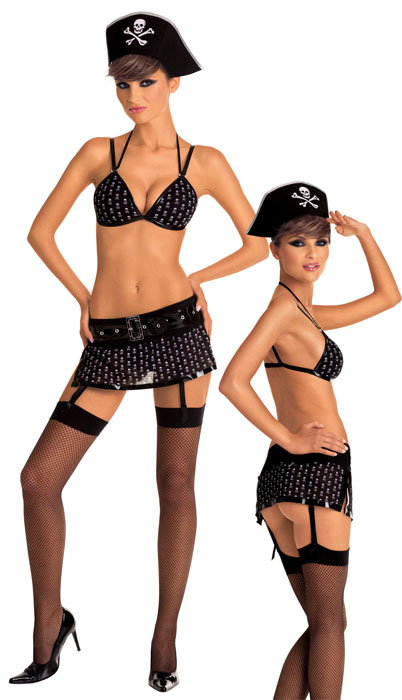 Игровой костюм бравой пиратки. В комплекте:лиф, трусики-стринг, пояс для чулок, головной убор.