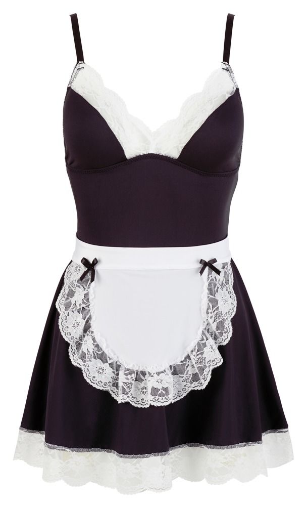 Костюм горничной из 2 предметов - платья с отделкой кружевом и передника на завязках сзади. В комплекте: платье, передник.