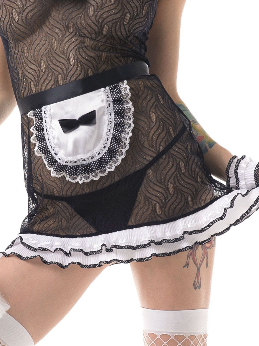 Костюм сексуальной прислуги внесет разнообразия в вашу сексуальную жизнь. Предстать в таком наряде перед любимым - значит воплотить в жизнь все его потаенные желания. Каждый мечтает овладеть горничной в сексуальном миниатюрном платьице, развратных чулочках, кружевном передничке, под который так и хочется заглянуть, и длинных перчатках. В комплекте: головной убор, передник, платье, перчатки, чулки в сетку.
