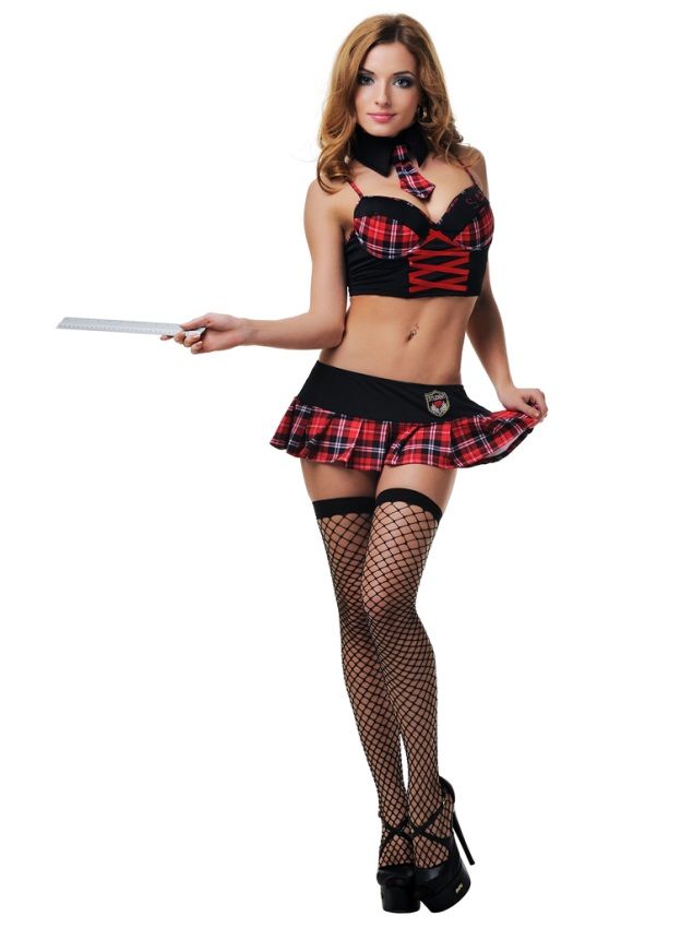 Прилежность этой старательной школьницы в клетчатом костюмчике прольётся бальзамом на сердце любому учителю. Стоит только рассказать ей теорию, как она тут же решит с десяток практических секс-задач по теме. И все как надо! И все с дополнительной и такой сладкой проверкой! Костюм состоит из: съмного воротника с галстуком, топа, юбки, чулок.