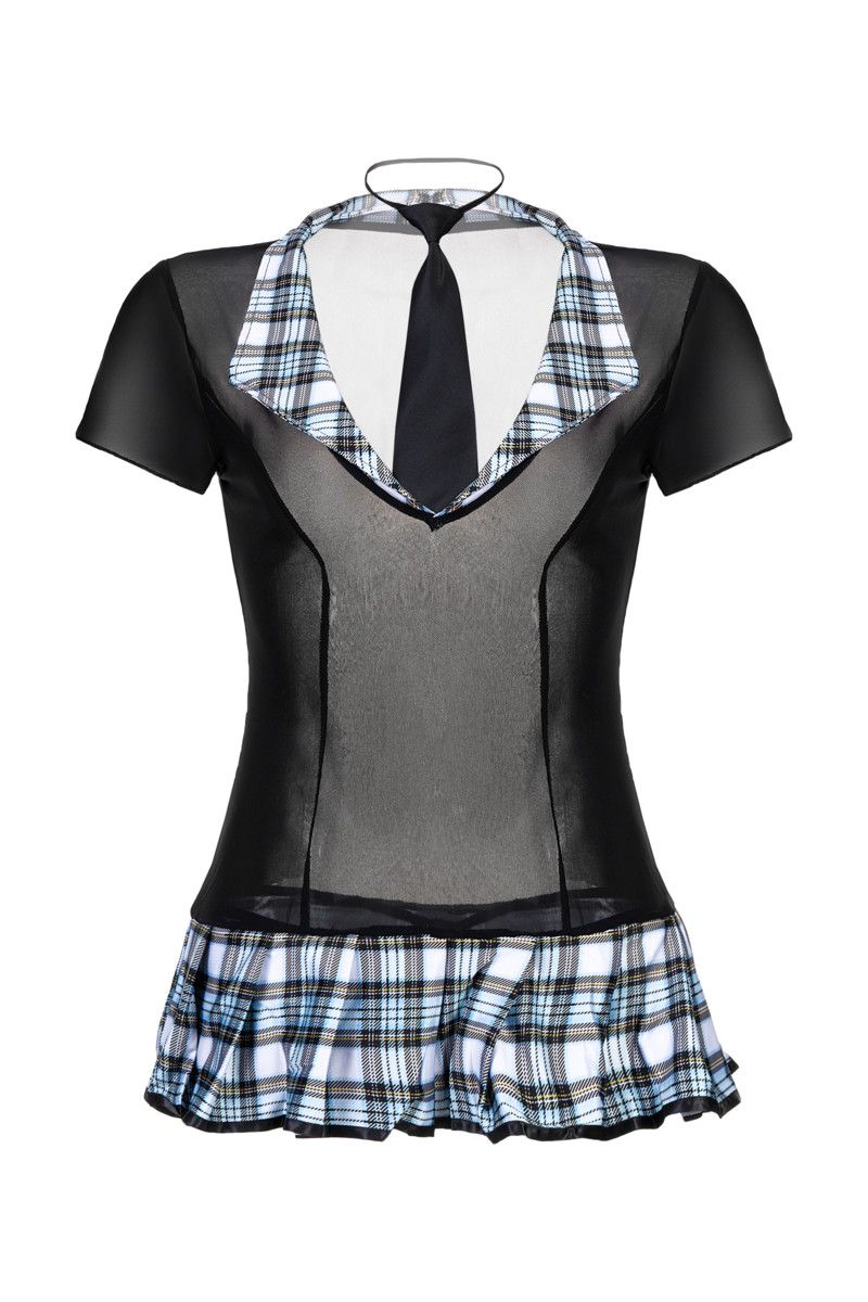 Прозрачный костюм школьницы Micki добавит игривости твоему образу, совершенно не лишая комфорта! Дизайн топа визуально сделает фигуру стройнее, а воротничок и оборки добавят объем груди и бедрам. Галстук на резиночке завершит образ. В комплекте: топ, галстук, трусики-стринги.