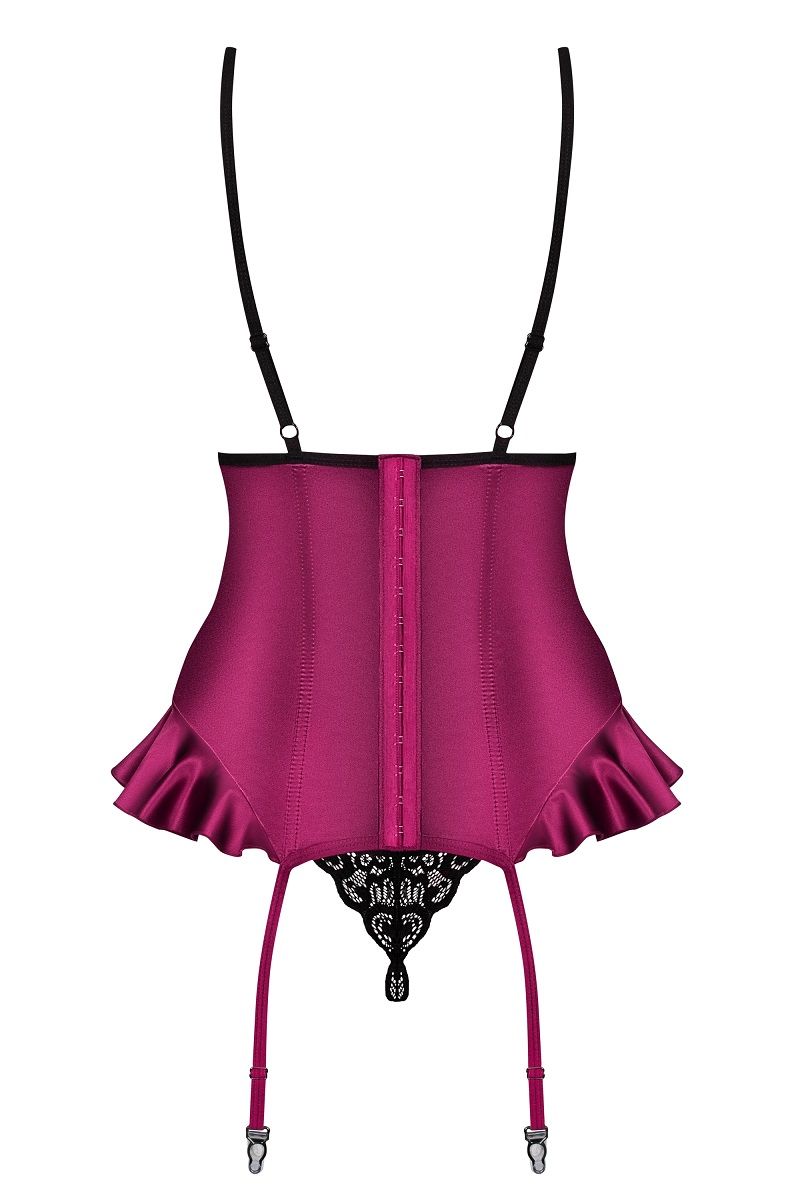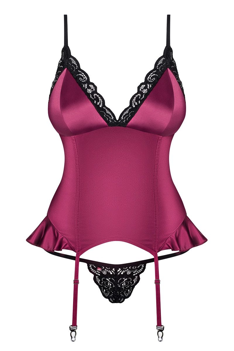 Малиновый корсаж с оборками по бокам. В комплекте: корсаж, трусики-стринги.