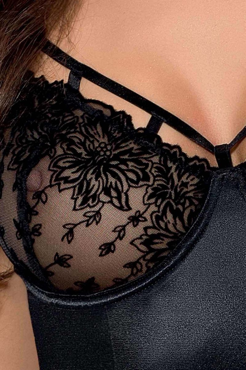 Сексуальный корсаж Haya с цветочным узором на кружеве. В комплекте: корсаж, трусики-стринги.
