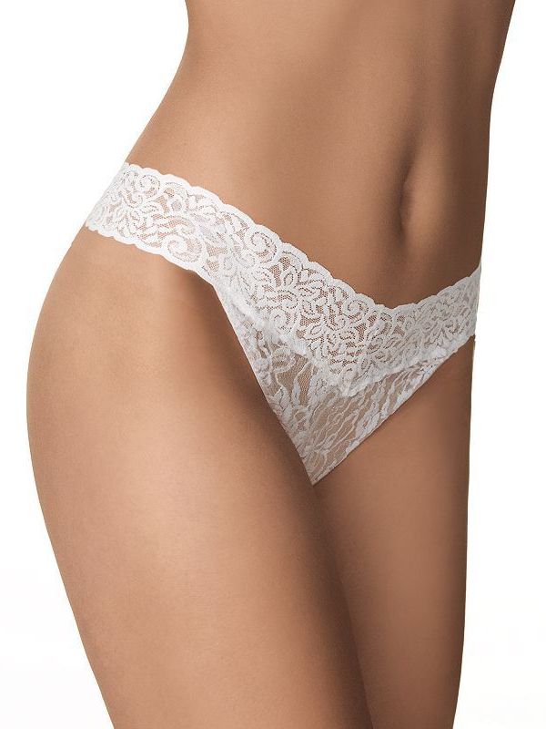 Трусы-стринги их эластичного кружевного полотна имеют свободный размер. Ластовица: 100% хлопок.
