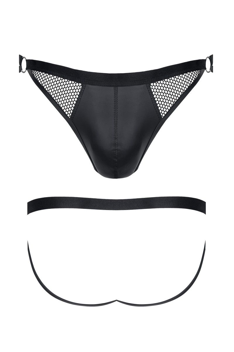 Мужские трусы с открытыми ягодицами. Вставки из эластичной сетки и декоративных колец по бокам делают эту модель особенно дерзкой. Высокое качество материалов и пошива - комфорт на высшем уровне.