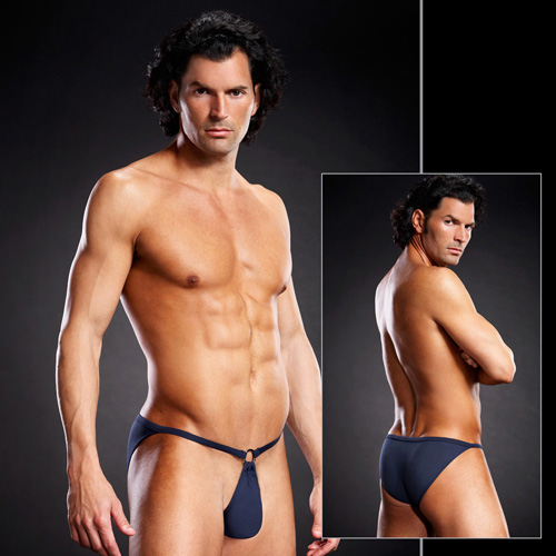 Мужские трусики pouch-бикини, такие трусики целиком закрывают ягодицы, соблазнительно обтягивая мужскую попку. Спереди небольшой треугольник соединяется с полосками с помощью металлического кольца. Упаковка: Коробка.