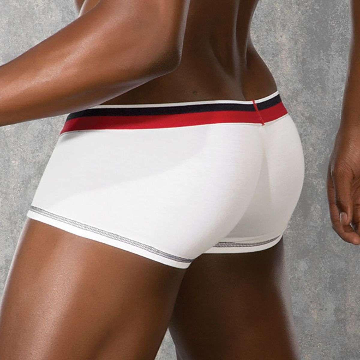 Боксеры на низкой посадке из хлопково-модальной ткани. Резинка украшена красной и синей полоской. Укороченная длина и комфортная гладкая ткань идеально подходят для повседневного использования.