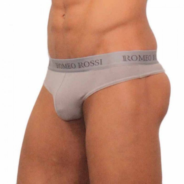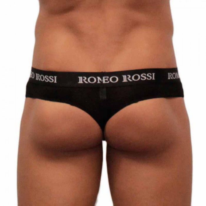 Мягкая хлопко-модальная хорошо тянущаяся ткань. Гладкие и сексуальные трусы-стринги имеют минимальный дизайн и удобную посадку. Ультра мягкий и тянущийся пояс с повторяющимся логотипом Romeo Rossi, создан для обеспечения абсолютного комфорта для тела. Идеальный мужской выбор нижнего белья для повседневной деятельности.