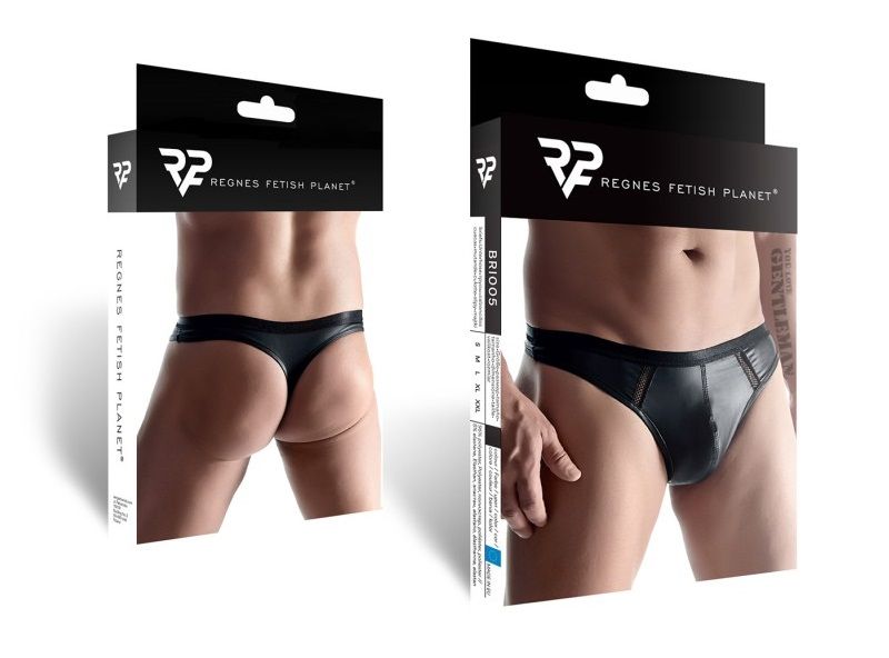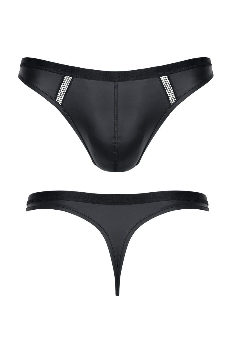 Мужские стринги в стиле wetlook. Широкая и приятная на ощупь резинка, сетчатые вставки спереди. Высокое качество материала и пошива - комфорт на высшем уровне.