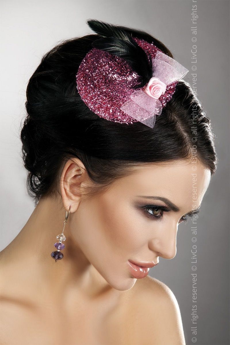 Блестящая розовая шляпка с розочкой. Высота - 4 см.