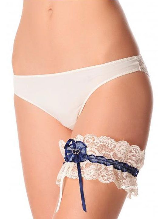 Подвязка кружевная на мягкой резинке. Посередине подвязка дополнена гипюровой тесьмой с атласной окантовкой и украшена гипюровым бантом с двумя золотыми кольцами - символами свадьбы. Шикарное дополнение к наряду невесты.