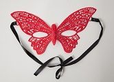 Красная кружевная маска Бабочка в венецианском стиле. Завязывается на черные атласные ленты. Упаковка - бумажный конверт. Размеры - 22,5 х 14 см.