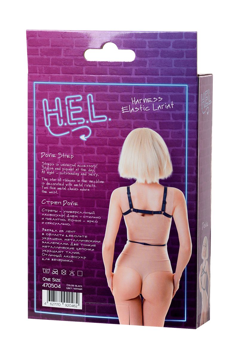 Портупея - уникальный аксессуар, способный добавить сексуальных акцентов не только в эротическом, но и в повседневном образе! Портупея Dovie - это звезда из лент в области декольте, украшена металлическими заклепками. Две тонкие металлические цепочки украшают талию. Отличный аксессуар для вечеринки. Благодаря регулируемым ремешкам - идеальная посадка по фигуре гарантирована!