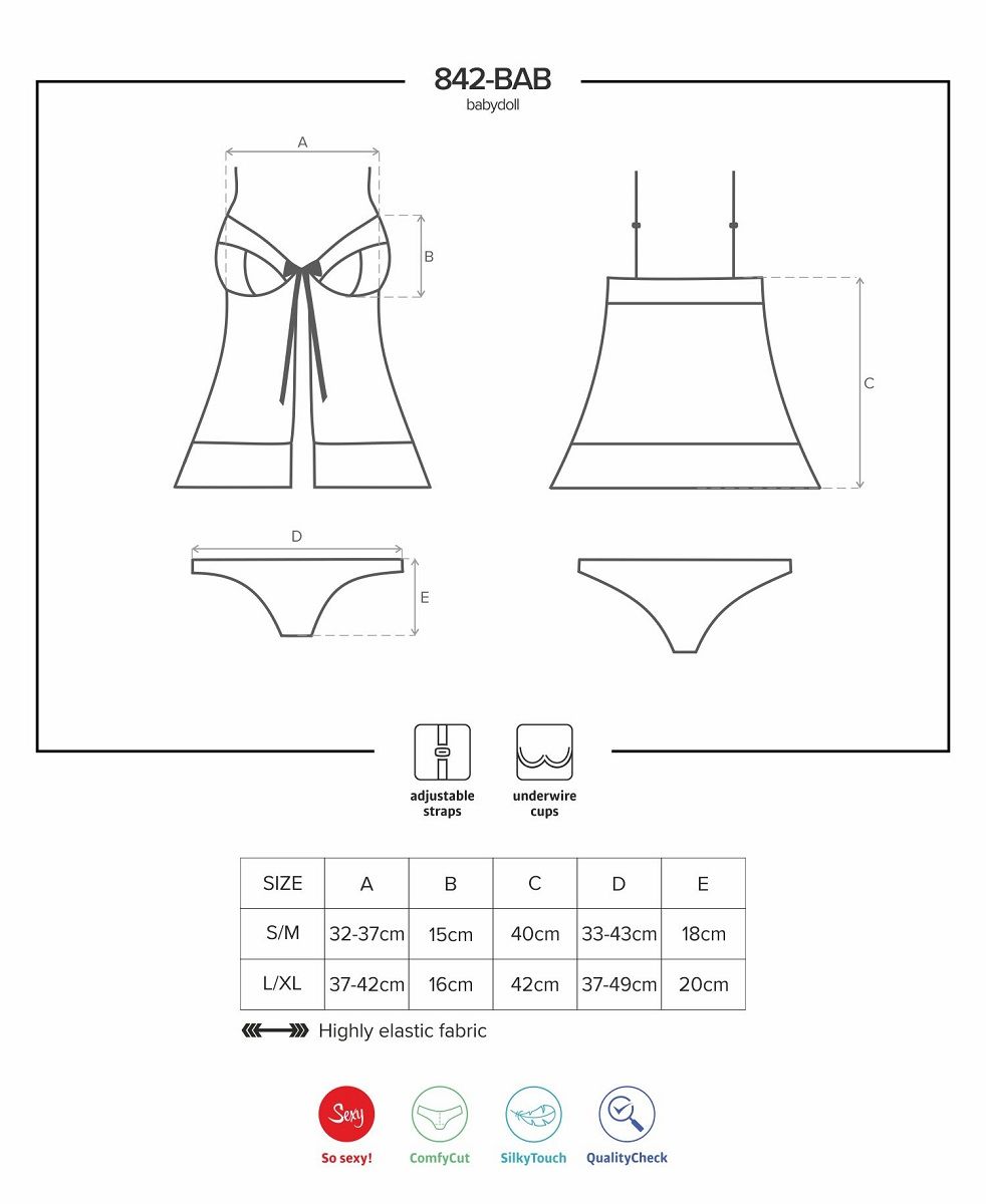 Короткий атласный бэби долл с открытым животом, чашка мягкая на косточке, зону декольте украшает атласный бант. В комплект входят кружевные трусики. В комплекте: сорочка, трусики.
