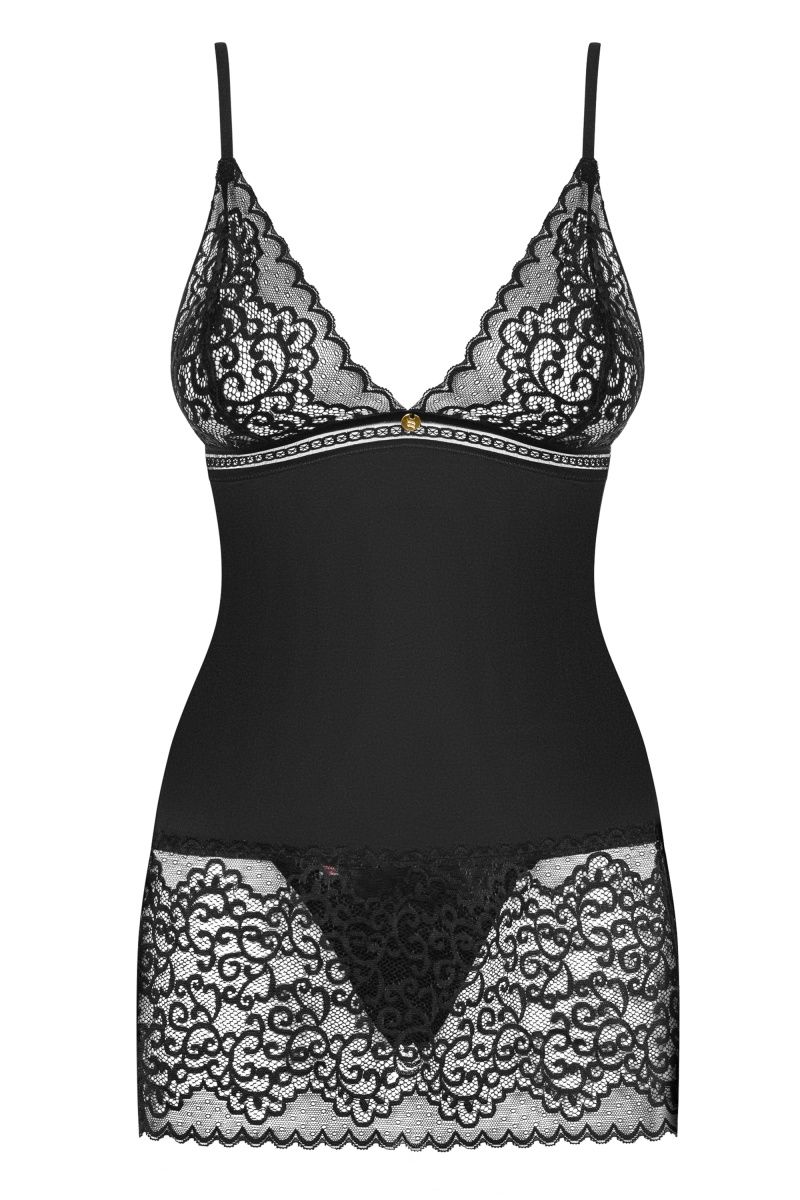 Очаровательная сорочка Ailay выполнена из эластичной ткани в сочетании с эффектным кружевом. Лиф мягкий без косточек, бретельки регулируются по длине. В комплекте: сорочка и трусики-стринги.