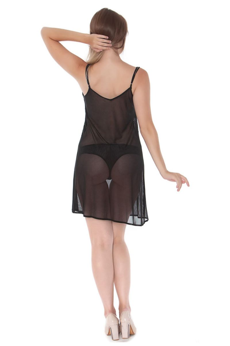 Женская сорочка выполнена из сочетания кружевного полотна с сеткой. Модель полуприталенного силуэта длиной выше колена. Изделие на тонких регулируемых бретельках. Декольте сорочки украшено нежным кружевом. Трусики не входят в комплект!
