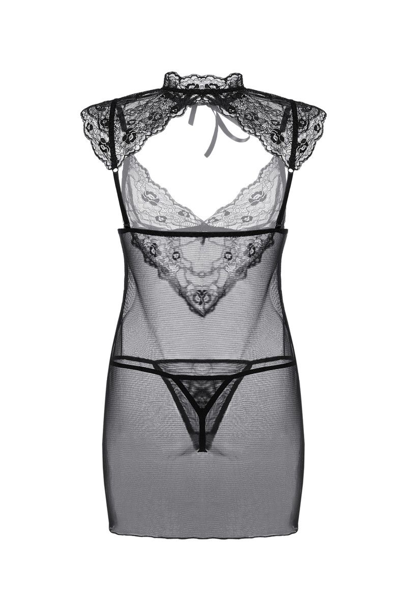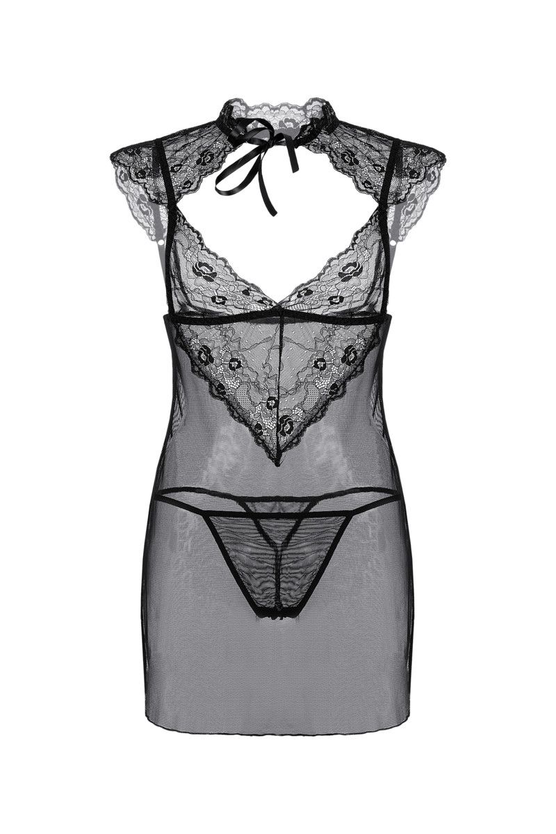 Прозрачная комбинация Luscious от Сandy Girl облегающего силуэта. Кружевной лиф с воротником-стойкой и мини-рукавами изящно обрамляет глубокое декольте и украшает спинку. Регулируемые бретели сзади обеспечивают идеальную посадку. В комплекте: комбинация и трусики-стринги.