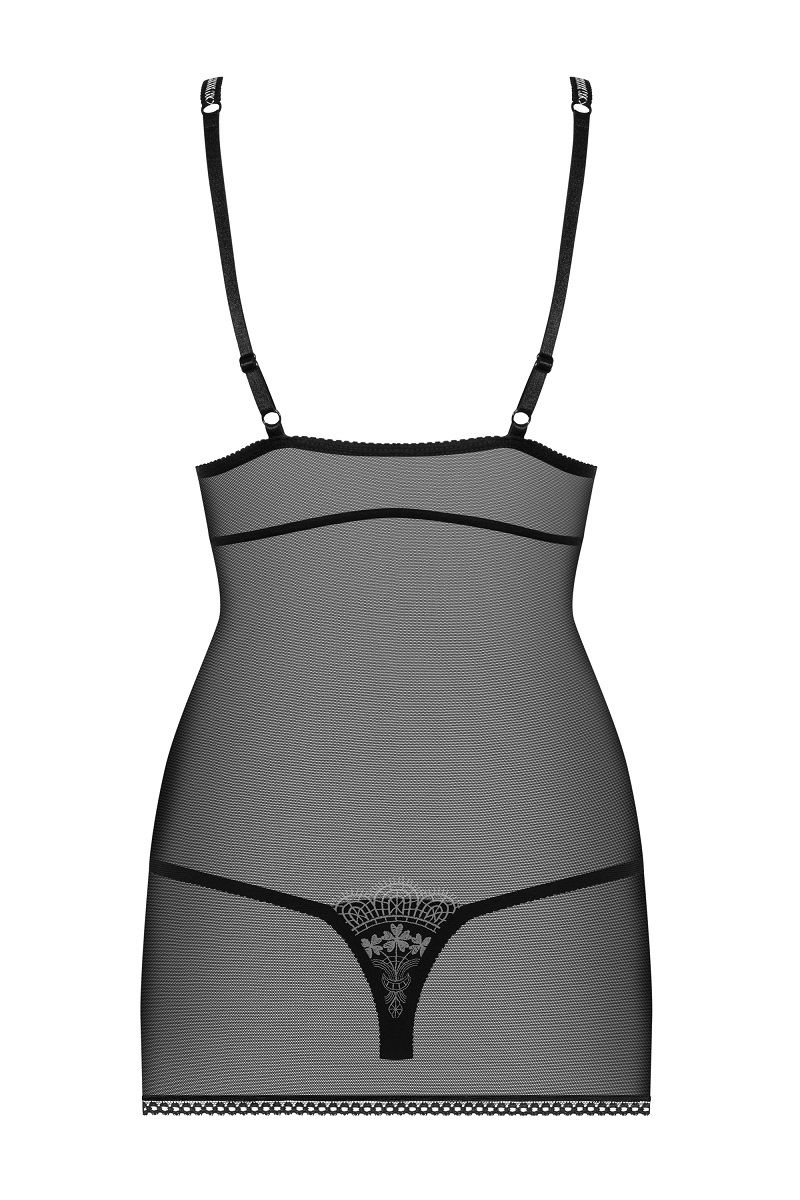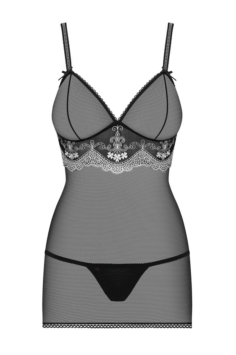 Полупрозрачная сорочка с кружевным декором под лифом. В комплекте: сорочка, трусики-стринги.