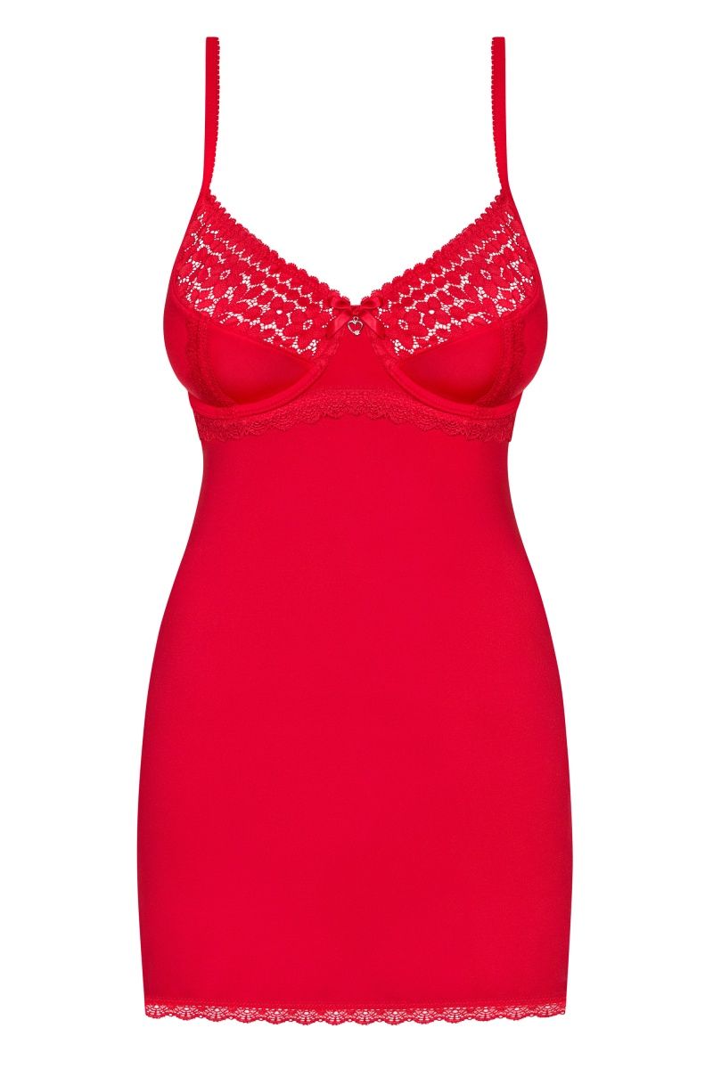 Кокетливая облегающая сорочка Jolierose выполнена из эластичного материала в сочетании с очаровательным кружевом. Лиф сорочки мягкий, на косточках, бретели регулируются по длине. В комплекте: сорочка и трусики-стринги.
