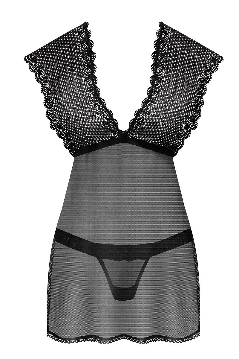 Соблазнительный бэби-долл с глубоким вырезом. В комплекте: сорочка, трусики-стринги.
