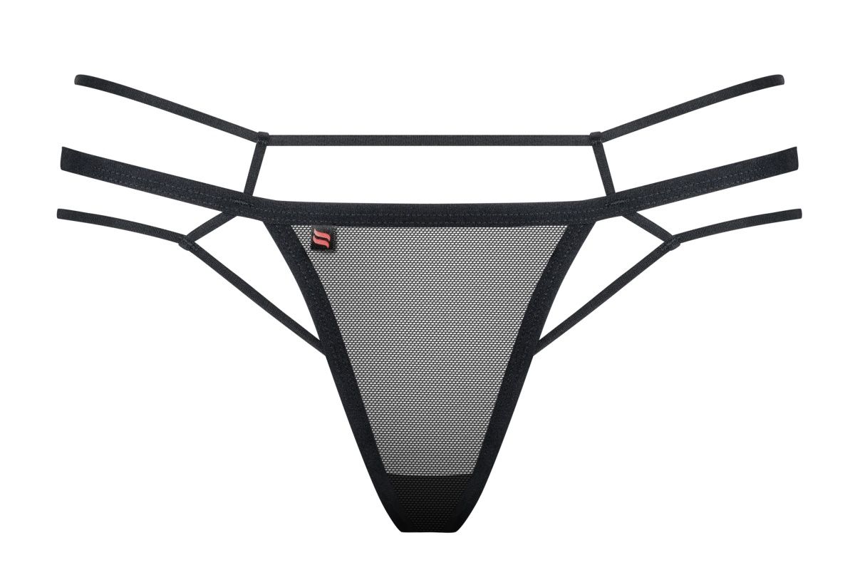 Женские трусики-стринги выполнены из полупрозрачной сетки.
