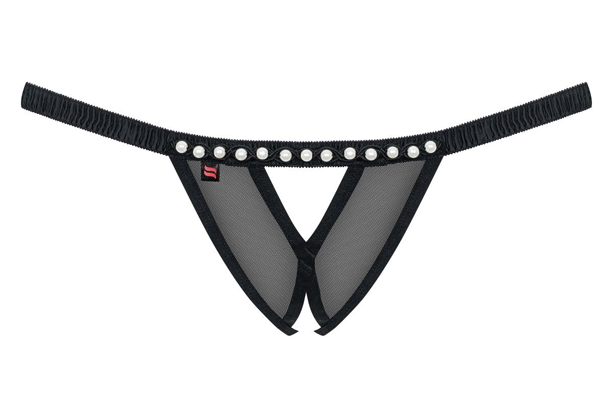 Открытые трусики стринги с доступом, украшены жемчужинками.