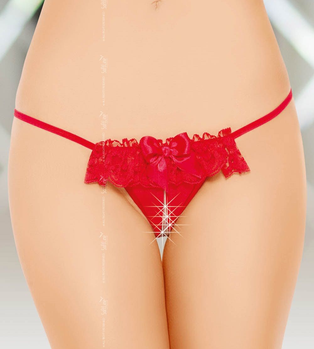 Эти трусики в некотором плане уникальны. Дело в следующем: трудно понять, с какой стороны они более сексуальны. Спереди – это два треугольничка полупрозрачной ткани, обнажающие зону бикини и украшенные лентой кружев. Сзади – хитросплетение бретелей, подчёркивающих ложбинку на попке.