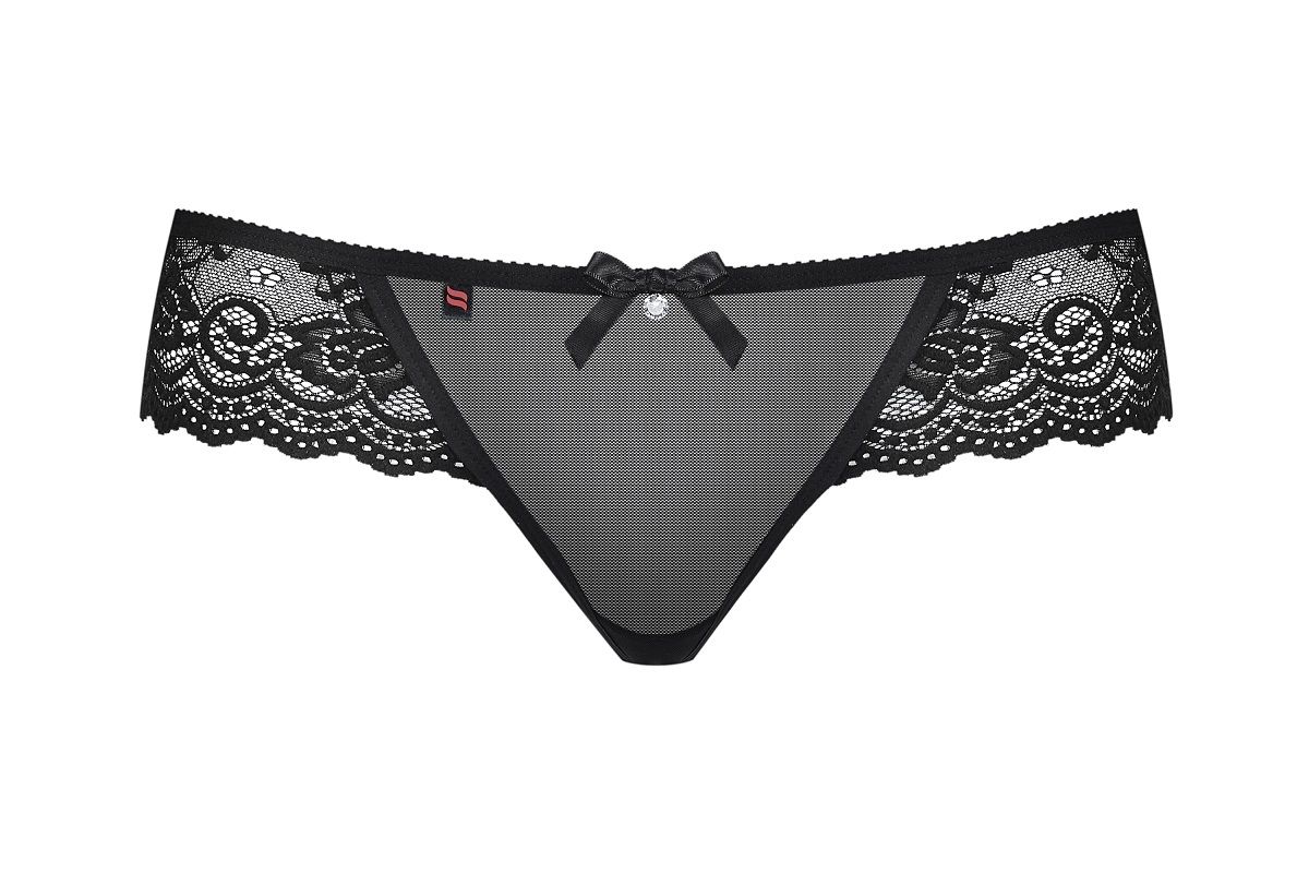 Соблазнительные кружевные трусики-стринги с бантиком и подвеской.