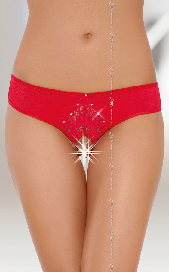 Наденьте эти очаровательные трусики, и вы – объект пристального внимания мужчины. От его глаз не скроются ни нежные кружева поверх горячего треугольника, ни пикантный вырез, открывающий доступ к пылающим от желания местечкам. Полупрозрачность ткани и блеск страз лишь усилят сногсшибательность образа…