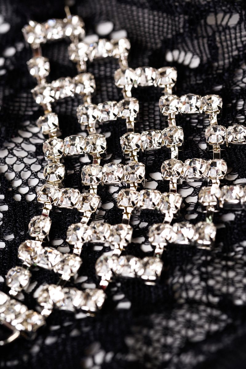 Полупрозрачное цветочное кружево впереди подчеркнет эротический настрой. Тонкие, мягкие лямочки и хлопковая ластовица обеспечат комфортные ощущения. Главный сюрприз - треугольная сеточка из страз на попе. Оригинальное колье, которое подчеркивает формы ваших ягодиц.