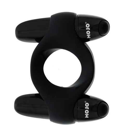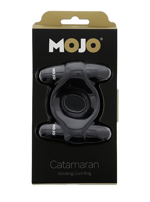 Чёрное эрекционное кольцо с 2 виброэлементами MOJO CATAMARAN. Внутренний диаметр - 2,2 см.